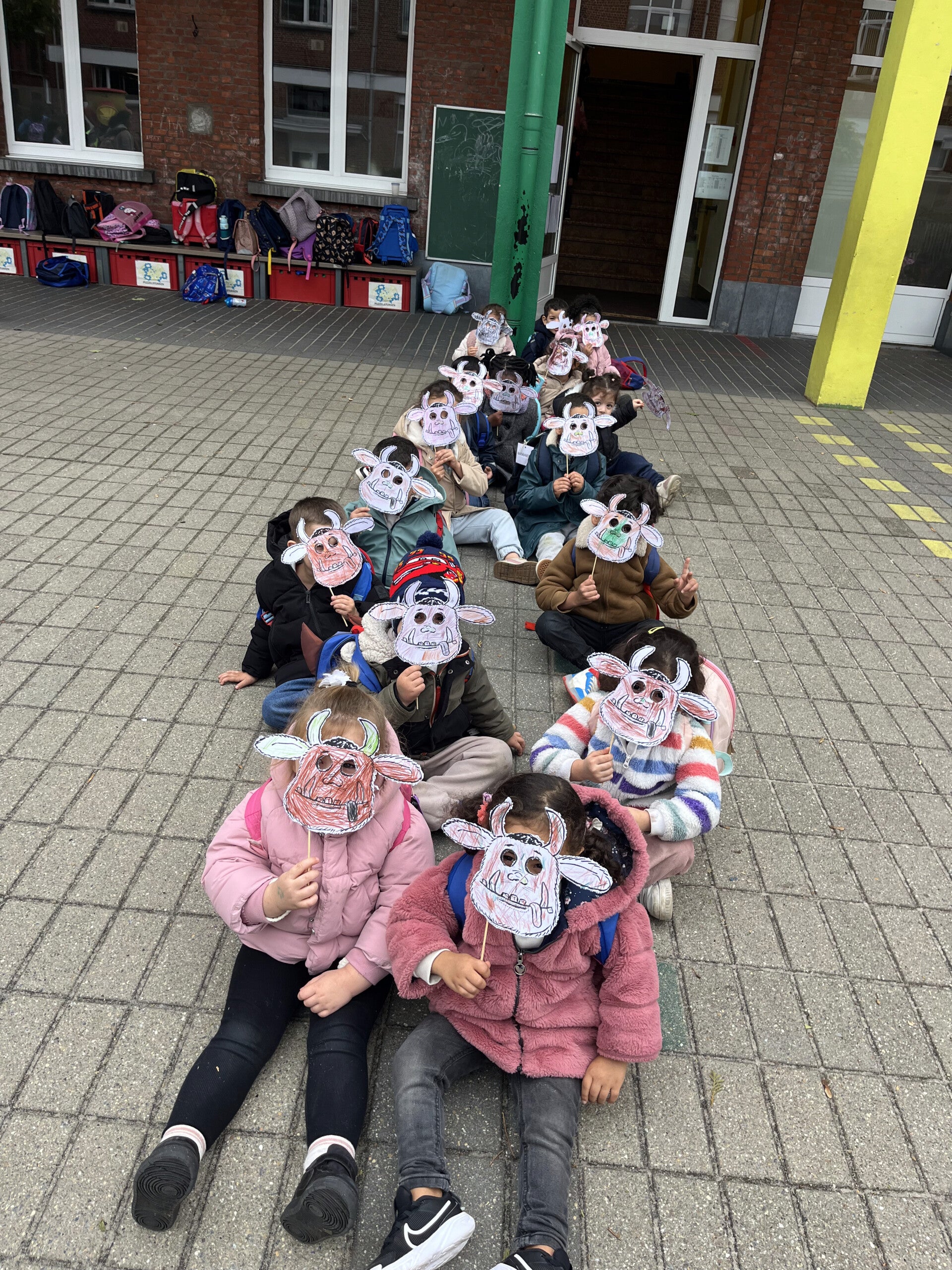 Vandaag knutselden de kleuters Gruffalo-maskers.