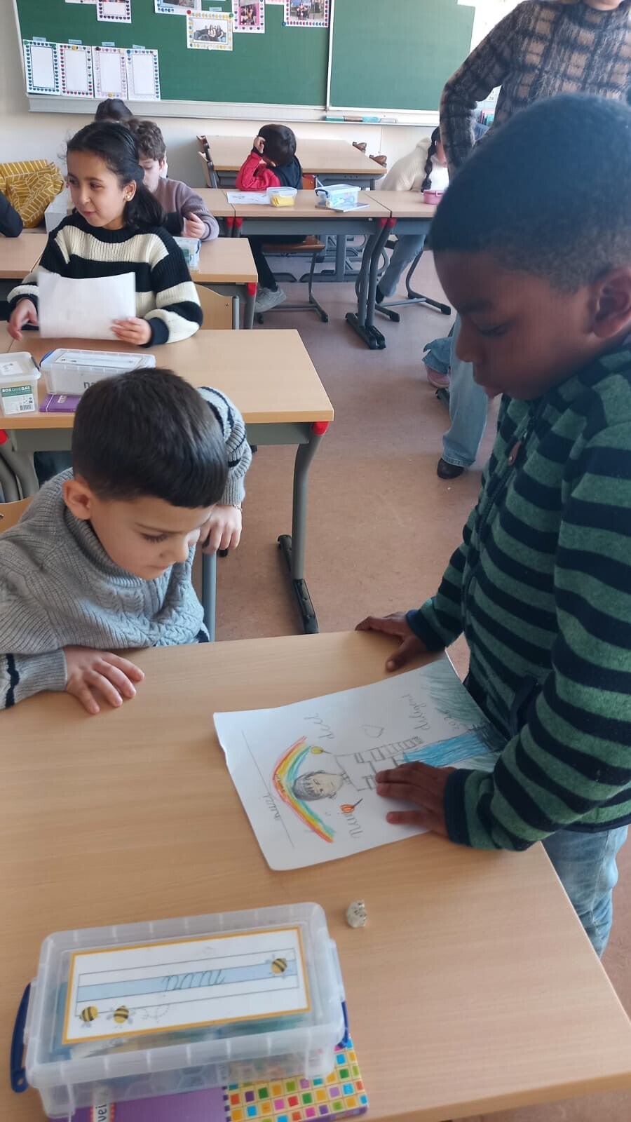 Samen met juf Bernadet schreven we lieve nieuwjaarswensen voor elkaar. We deden ontspannende yoga-oefeningen en ontdekten via speelse opdrachten meer over onze gevoelens. Een fijne mix van rust, verbondenheid en zelfinzicht.