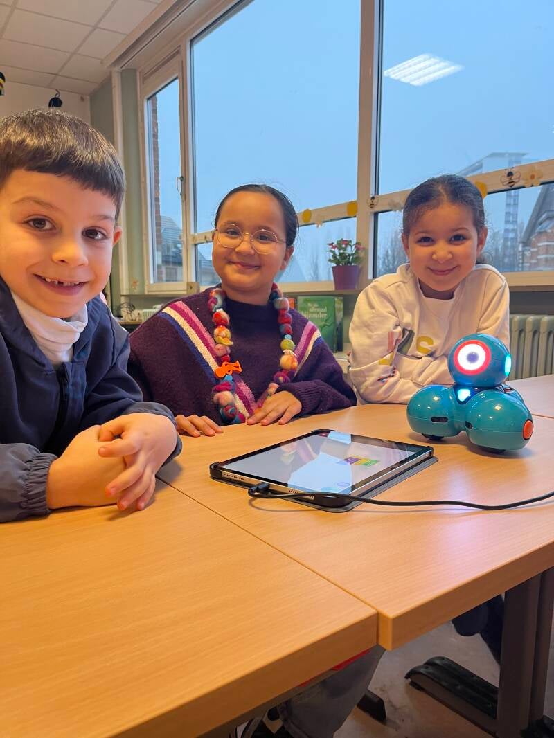 We gingen ook aan de slag met echte robots. Dankzij het materiaal van Digitale Wolven leerden we programmeren, testen en bijsturen. De kinderen ontdekten hoe leuk en logisch technologie kan zijn.