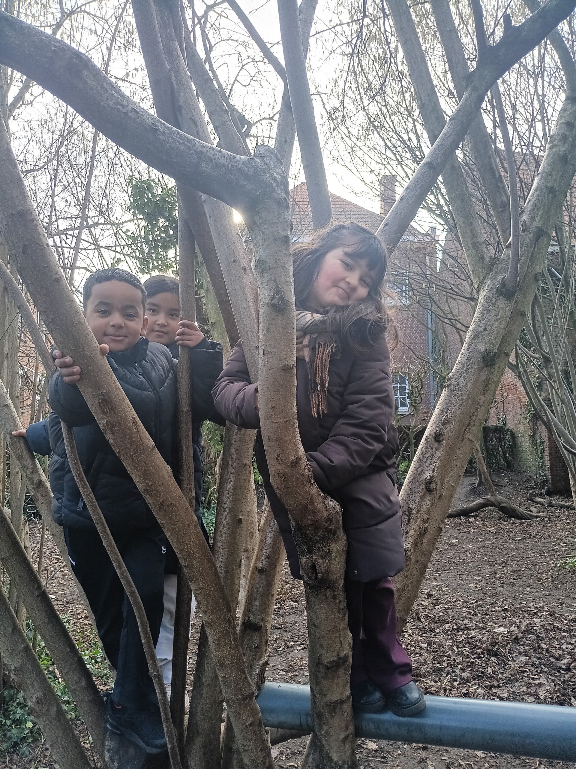 Met een winterzonnetje op onze snoet is het soms echt zalig vertoeven in onze tuin. Wisten jullie trouwens dat we elke vrijdag in de tuin gaan spelen met de kinderen van het 6de leerjaar. Elke week kijken onze kleuters hier reikhalzend naar uit. Niets is leuker dan ravotten in de tuin, klimmen in bomen, putten graven, met stokken spelen, boomstammen dragen, soep maken met natuurlijke materialen, . . .