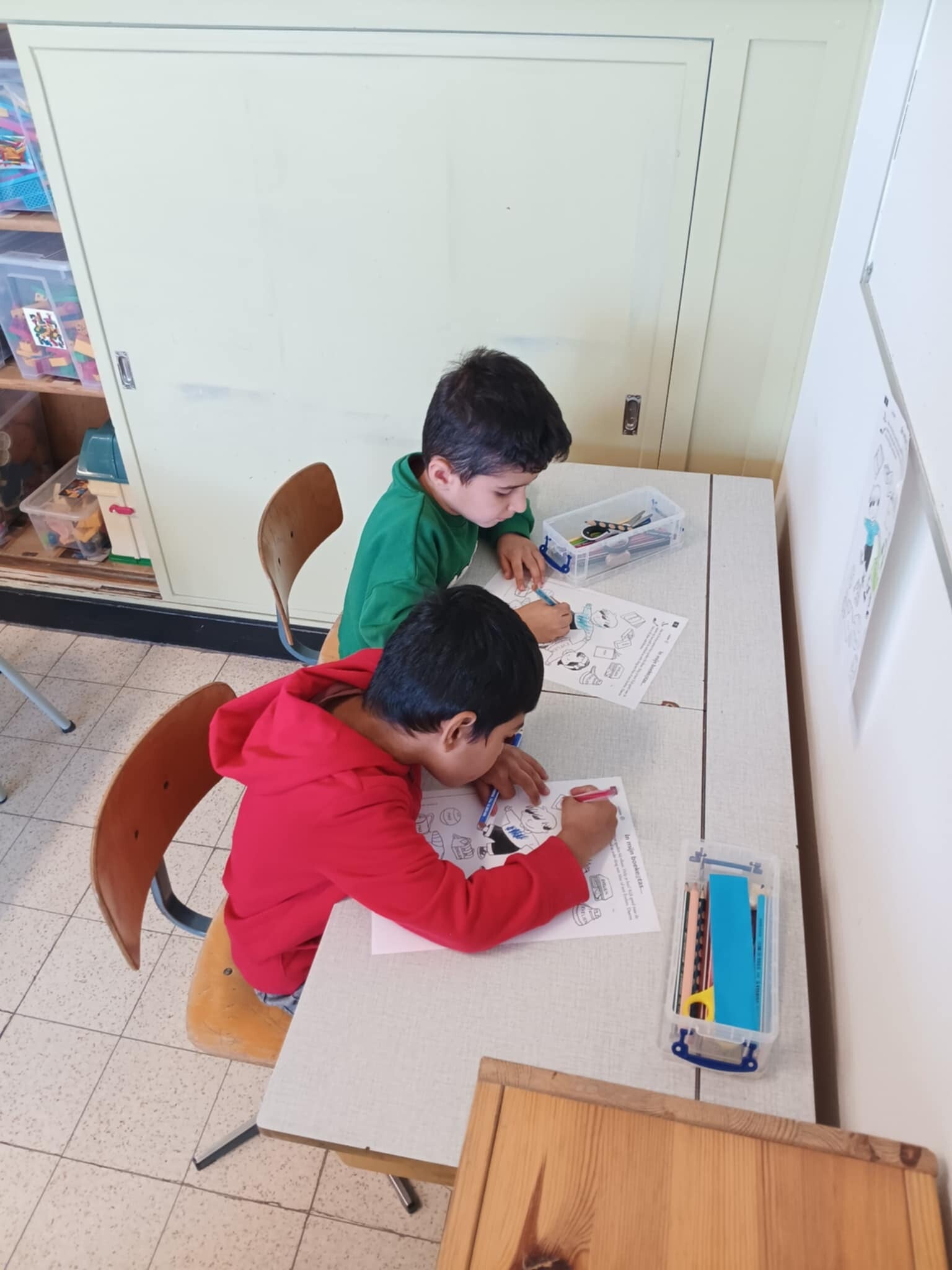 In de smurfenklas hebben we in de maand september ook al een les krullenbol achter de rug. We zijn gestart met het konijn omdat Rikki heel centraal stond in deze eerste maand van het schooljaar. Verder oefenden we nog onze schrijfvaardigheden door schrijfpatronen te maken.
