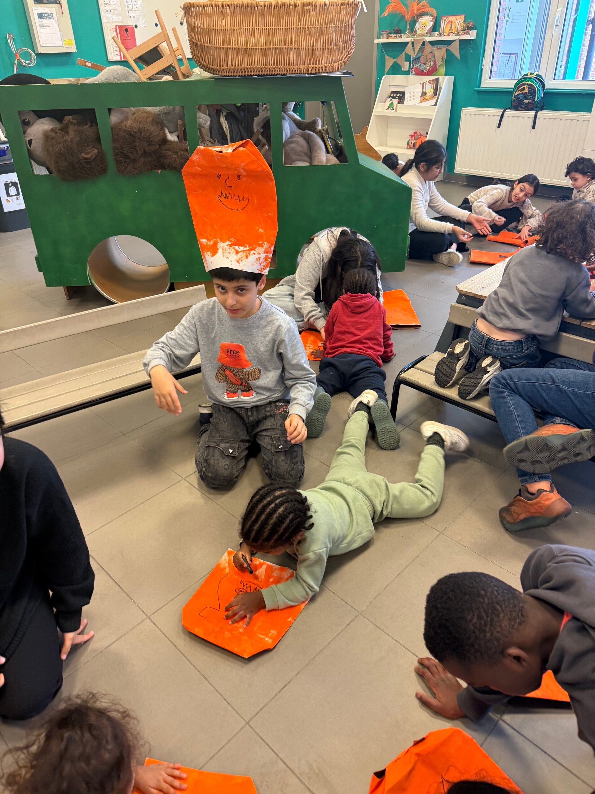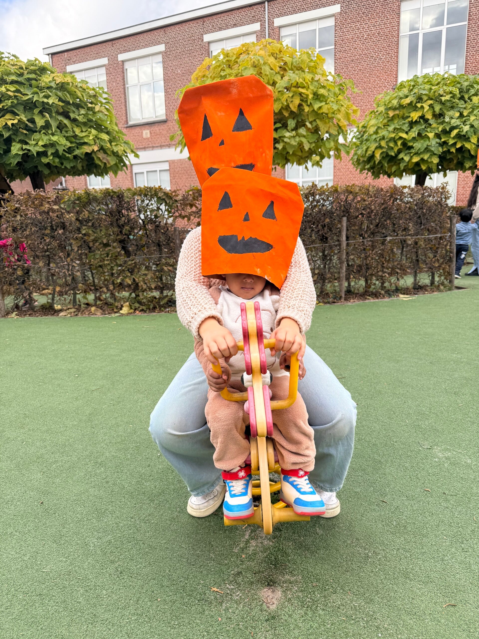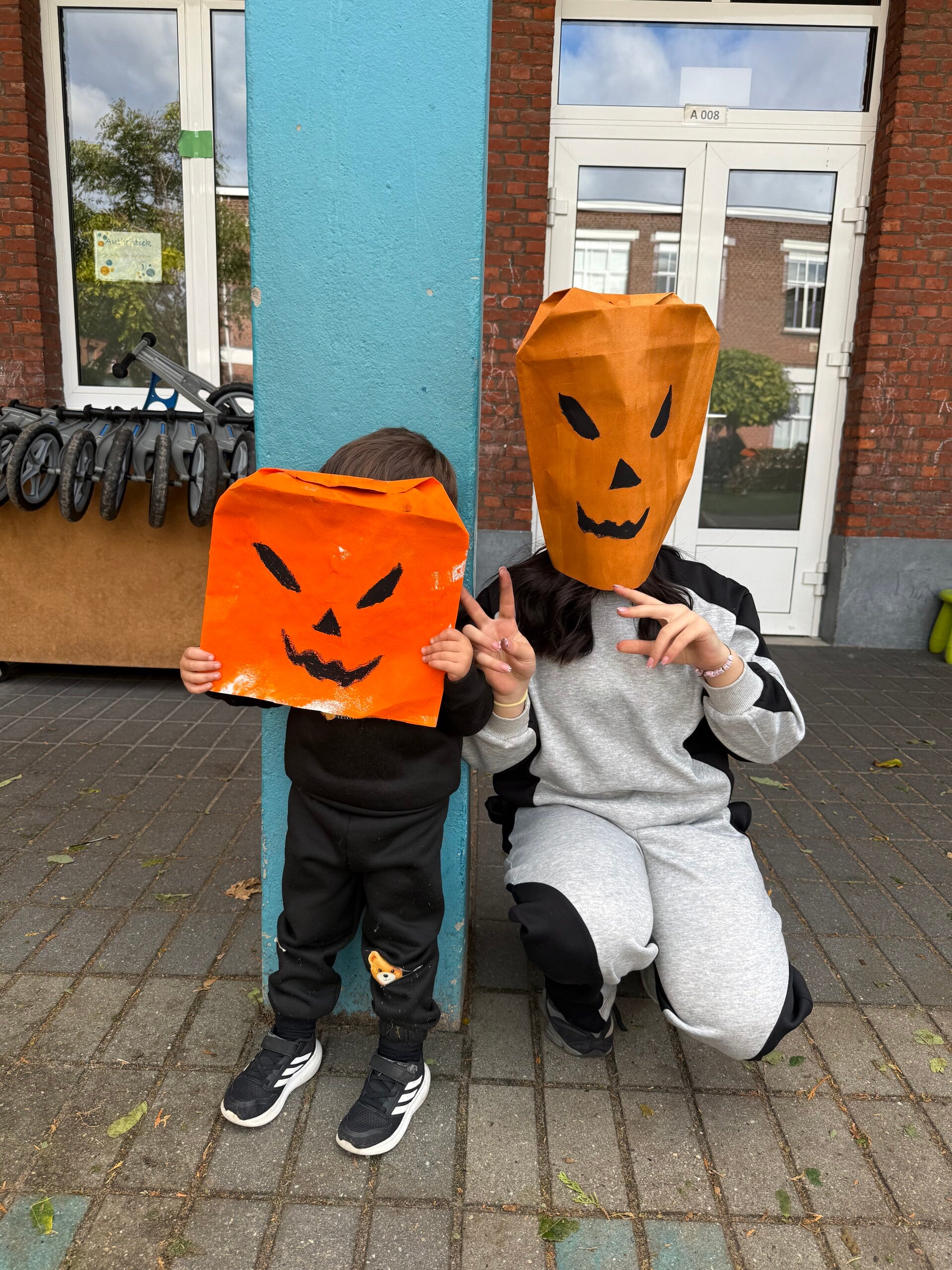 Op de laatste schooldag voor de vakantie, namen we de tijd om ook even Halloween in de kijker te zetten. We knutselden een pompoen gezicht en maakten leuke foto’s!