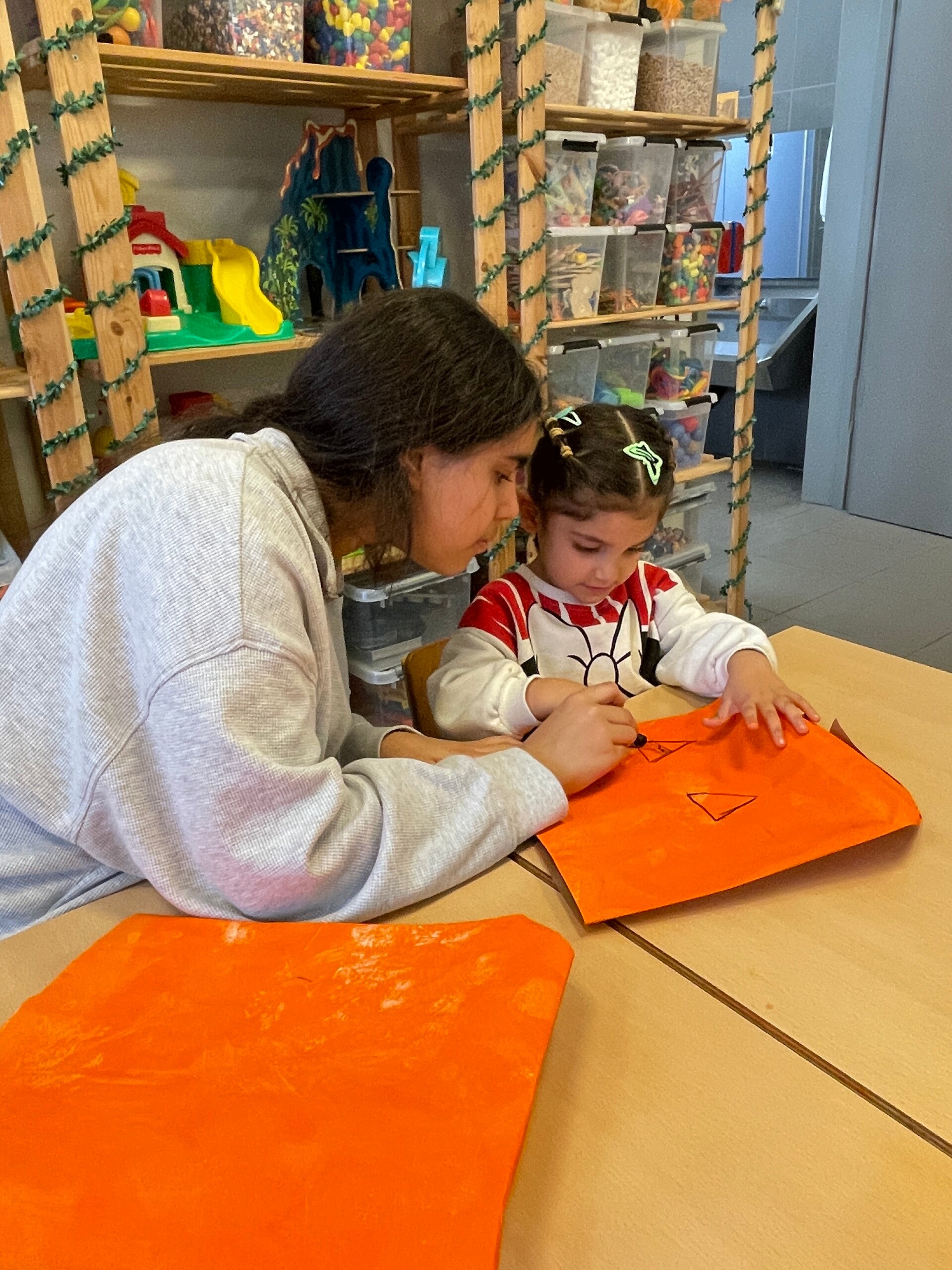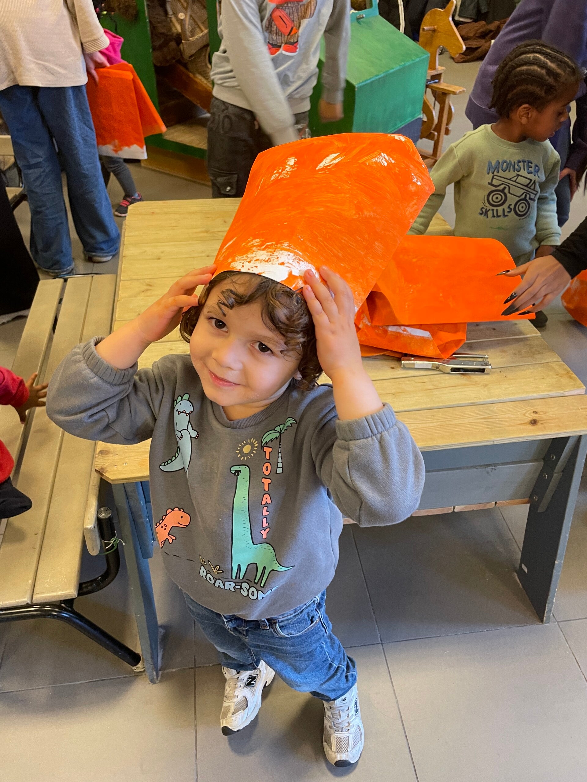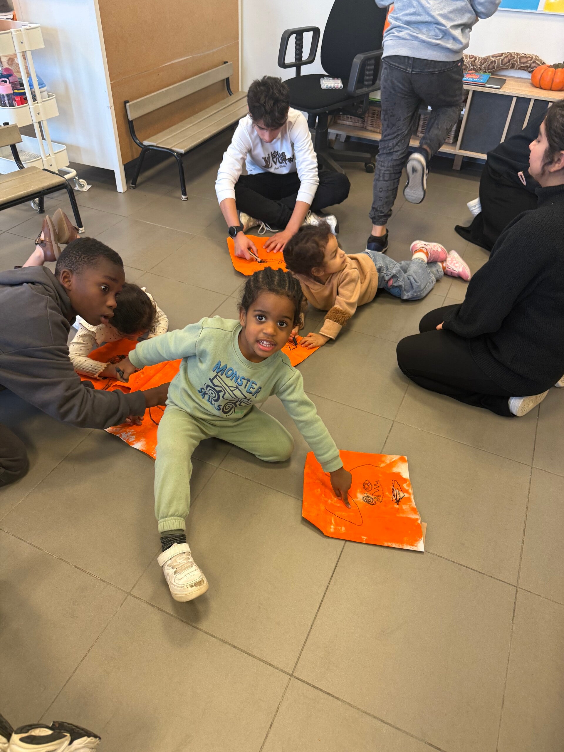 Op de laatste schooldag voor de vakantie, namen we de tijd om ook even Halloween in de kijker te zetten. We knutselden een pompoen gezicht en maakten leuke foto’s!