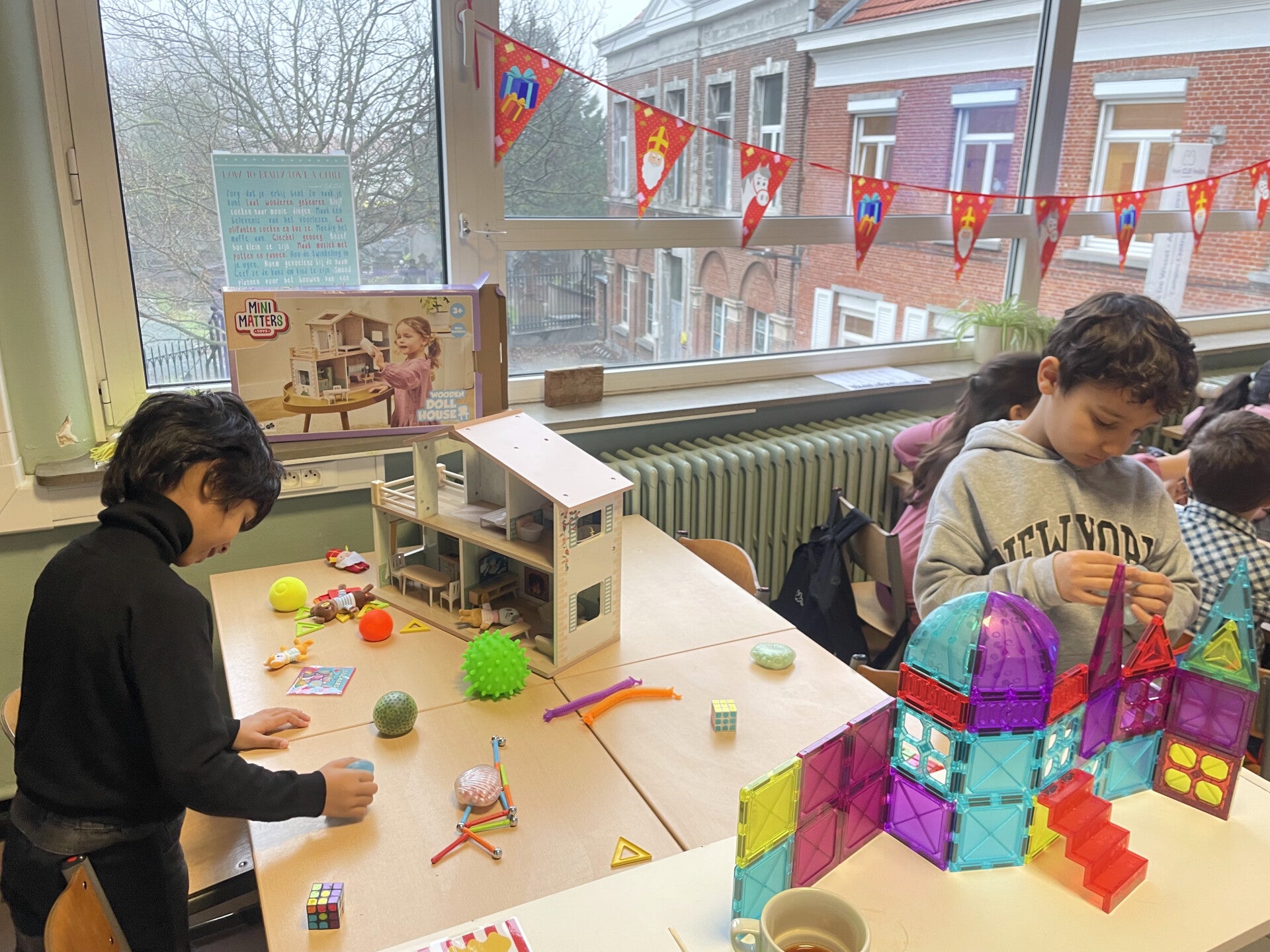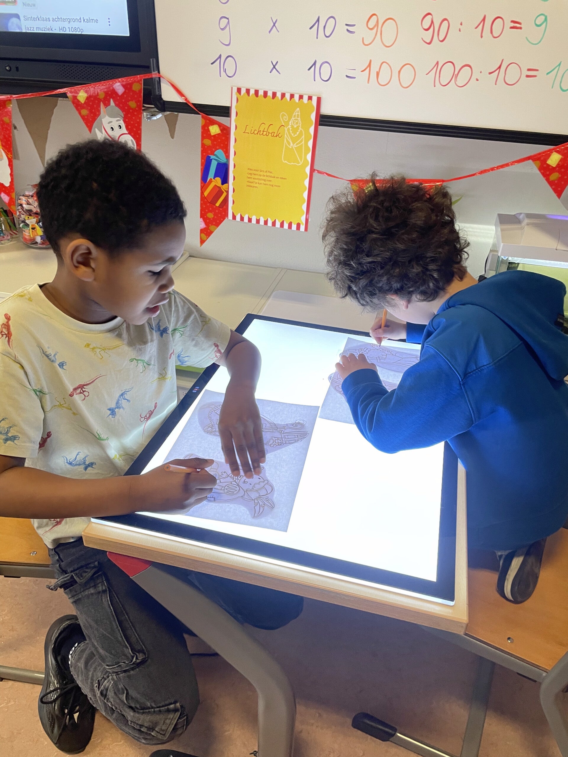 Begin december (al een poosje geleden dus) mochten we Sinterklaas verwelkomen in onze klas. Om deze dag extra speciaal te maken, deden we allerlei opdrachten die te maken hadden met de Sint, Piet en het paard. We zongen ook ons liedje voor hun, dat konden we heel goed!