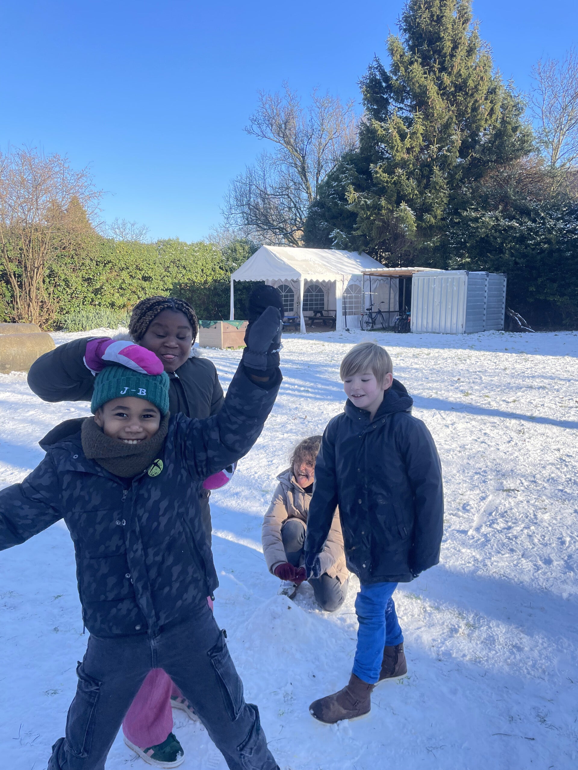 Na de kerstvakantie sneeuwde het nog eens, JOEPIE! Samen speelden we met de sneeuw in de tuin en we maakten zelf een sneeuwpop van wel 4 bollen!